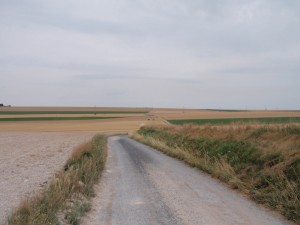 Na het ontbijt richting Reims, een kort stukje. Tenminste dat dacht ik, maar als je na 3 km moet kiezen voor een richting en je kiest de verkeerde, kost je dat 10 km extra. Dat overkwam mij dus. Geen probleem hoor, liep door dalen en heuvels. Het is gelukkig hier niet zo stijl en het was vandaag niet zonnig, maar wel lange afstanden door de akkergebieden.
